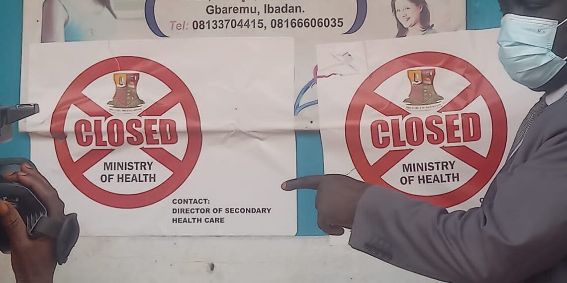 Among the facilities sealed were the New Jobi Memorial Hospital; Omolara Clinic & Maternity Home Iped Amazing Grace Medical Clinic; Emiloju Clinic and Maternity Centre Ogbere and Safeway Clinic, Gbaremu; Emilagba clinic and Maternity Centre, Ibadan.