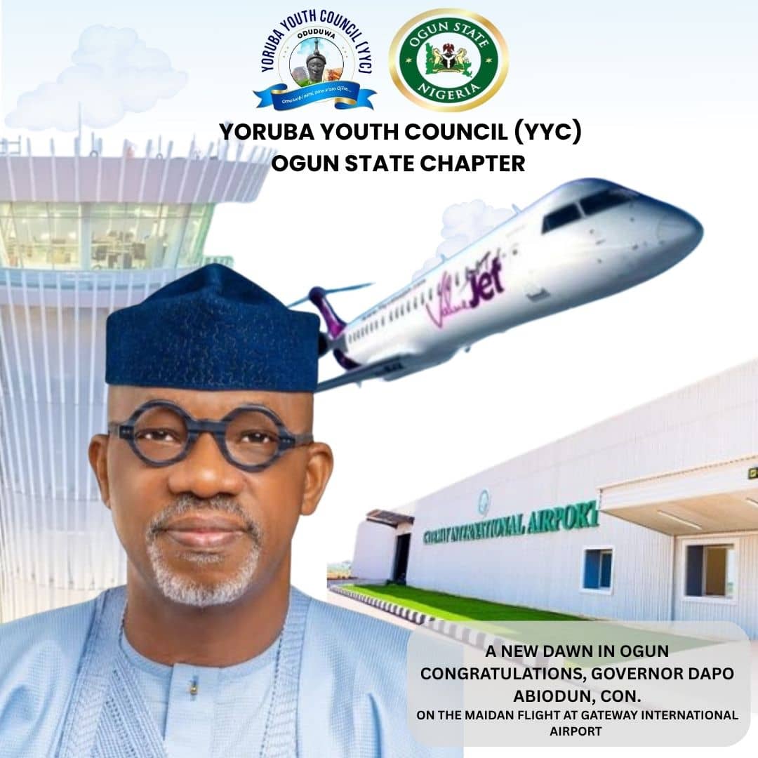 The Yoruba Youth Council (YYC), Ogun State Chapter, has applauded the government of Prince Dapo Abiodun, CON, for the successful commencement of operations at the newly established Gateway International Airport, Iperu-Ilishan, describing it as a historic milestone in the state’s infrastructural development.